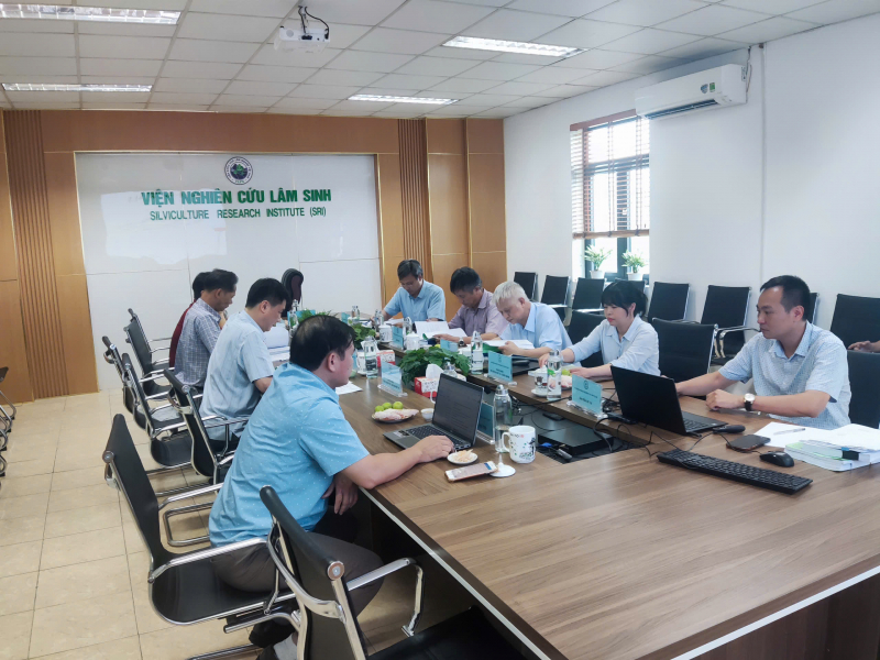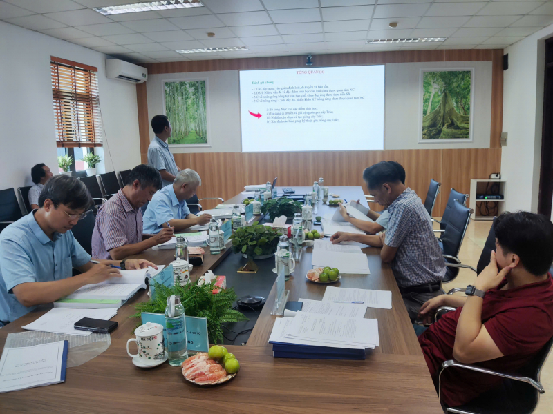 Hội dồng đánh giá, nghiệm thu cấp cơ sở ngày 27/08/2025 theo Quyết định số 96/QĐ-NCLS ngày 14/8/2025 của Viện trưởng Viện nghiên cứu Lâm sinh. Danh sách Hội đồng gồm: 1) GS.TS. Võ Đại Hải – Chủ tịch HĐ, 2) TS. Trần Lâm Đồng - Phó Chủ tịch HĐ, 3) PGS.TS. Lê Xuân Trường – Phản biện 1, 4) TS. Đặng Văn Thuyết – Phản biện 2, và các Ủy viên, thư ký gồm: TS. Lại Thanh Hải, TS. Triệu Thái Hưng, TS. Cao Chí Khiêm.