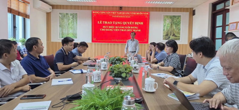 Ngày 01/10/2025, tại trụ sở Viện Nghiên cứu Lâm sinh, Chi bộ Viện Nghiên cứu Lâm sinh đã long trọng tổ chức Lễ trao tặng Huy hiệu 30 năm tuổi Đảng cho đảng viên Trần Đức Mạnh - Chánh Văn Phòng Viện.