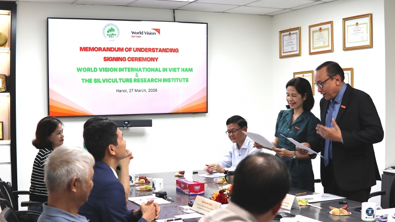Ngày 27/3/2026 tại Hà Nội, Tổ chức Tầm nhìn Thế giới tại Việt Nam (WVI) và Viện Nghiên cứu Lâm sinh (SRI) đã ký kết Biên bản ghi nhớ hợp tác (MoU). Một trong những hoạt động chính của chương trình hợp tác là thúc đẩy việc ứng dụng mô hình Cộng đồng xanh (Regreening Community – RGC) trong lĩnh vực lâm nghiệp và nông lâm kết hợp tại Việt Nam, góp phần tăng cường khả năng chống chịu với biến đổi khí hậu và cải thiện sinh kế bền vững cho cộng đồng địa phương, đặc biệt là các cộng đồng dễ bị tổn thương và ở vùng sâu, vùng xa.